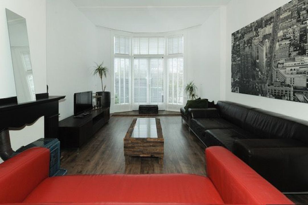 Grote raampartij met openslaande deuren naar diepe afgesloten achtertuin (ca. 8 x 10m)