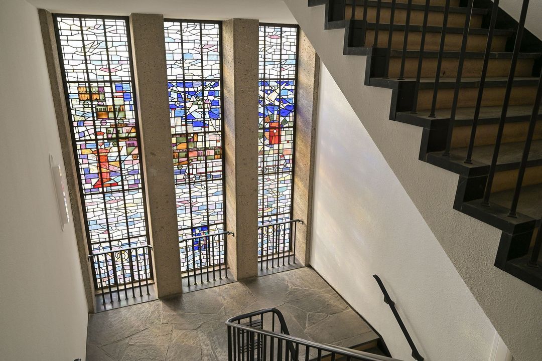 Entree op straatniveau, afgesloten entree met videofoon, fraaie algemene hal met mooie glas-in-lood raampartijen en lift naar de 3e verdieping.