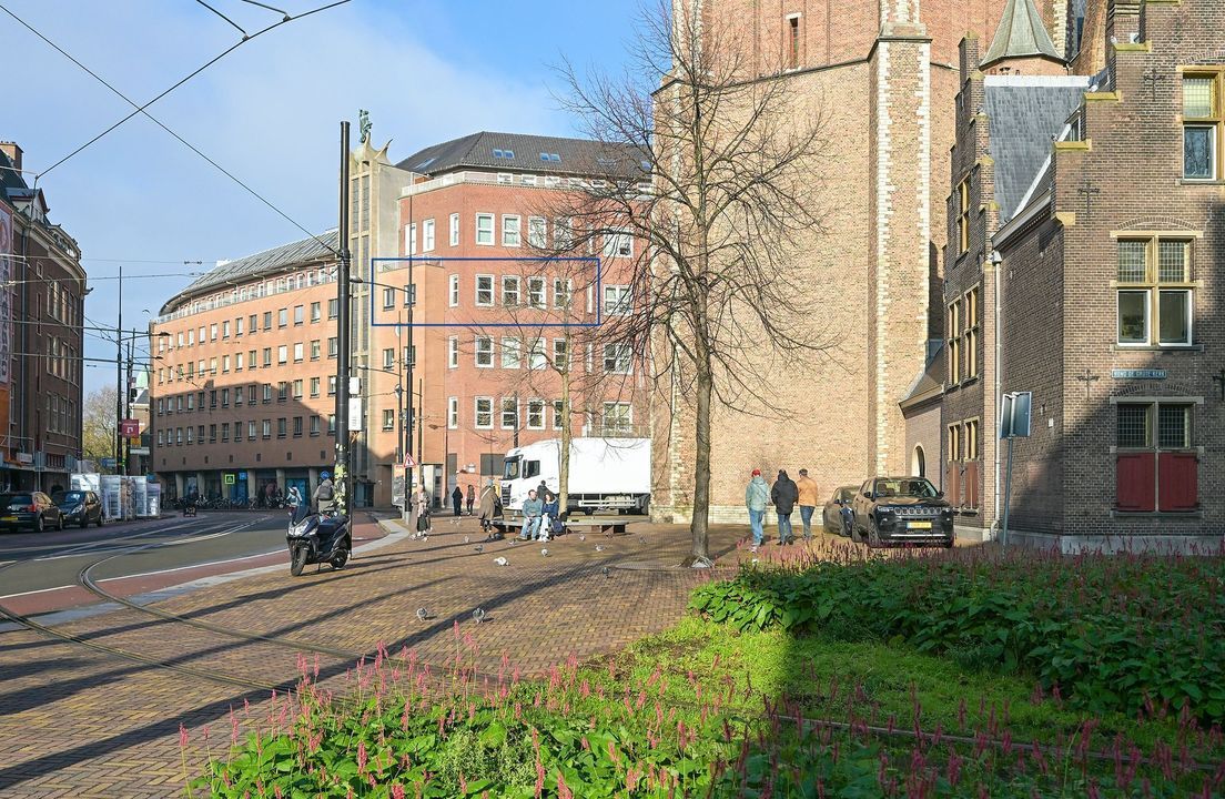 A fantastic corner flat with a private garage (priced separately) and storage room, situated in The Hague’s old town centre, the Hofkwartier. The flat forms part of ‘Hof ter Hage’, the former PTT post office dating from 1958, which was converted in 1998 into a luxury apartment complex featuring a beautiful courtyard garden. From the flat, you have a view of the striking large church, St James’s Church.